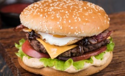 Pão, blend bovino 150g e cheddar fatia, bacon, calabresa, ovo, alface, tomate e molho da casaPURO BACON