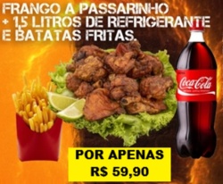 Frango a passarinho com fritas + Refrigerante + frete grátis