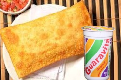 Pastel frito na hora, venha experimentar um saboroso pastel quentinho e delicioso!Pastel frito + Guaravita