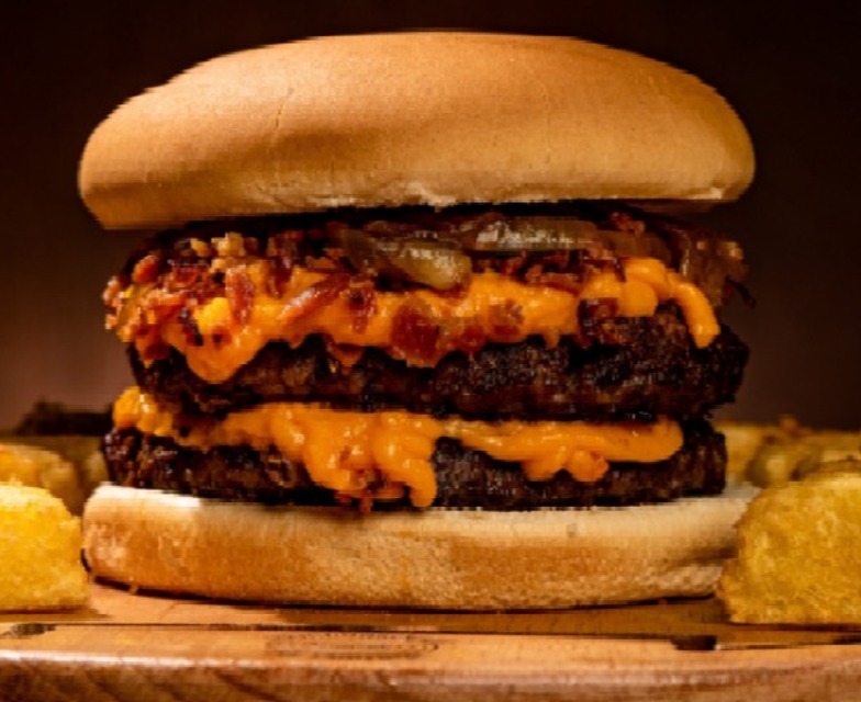 Pão, 2 carnes, queijo cheddar fatia e molho especial