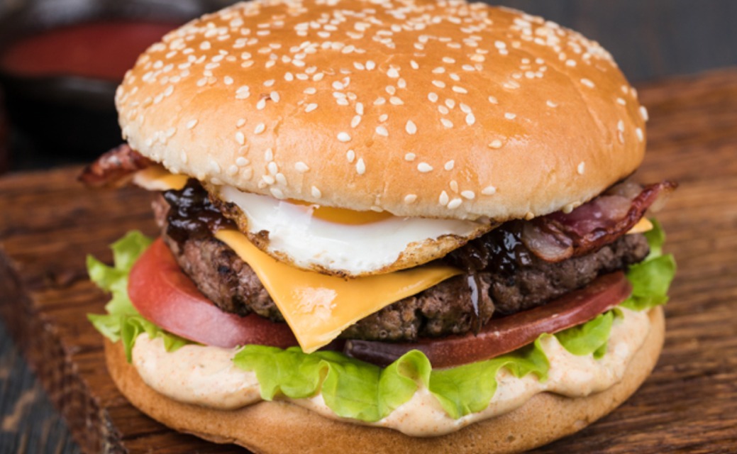 Pão, carne, queijo, presunto, calabresa, bacon, ovo, salada e molho especial